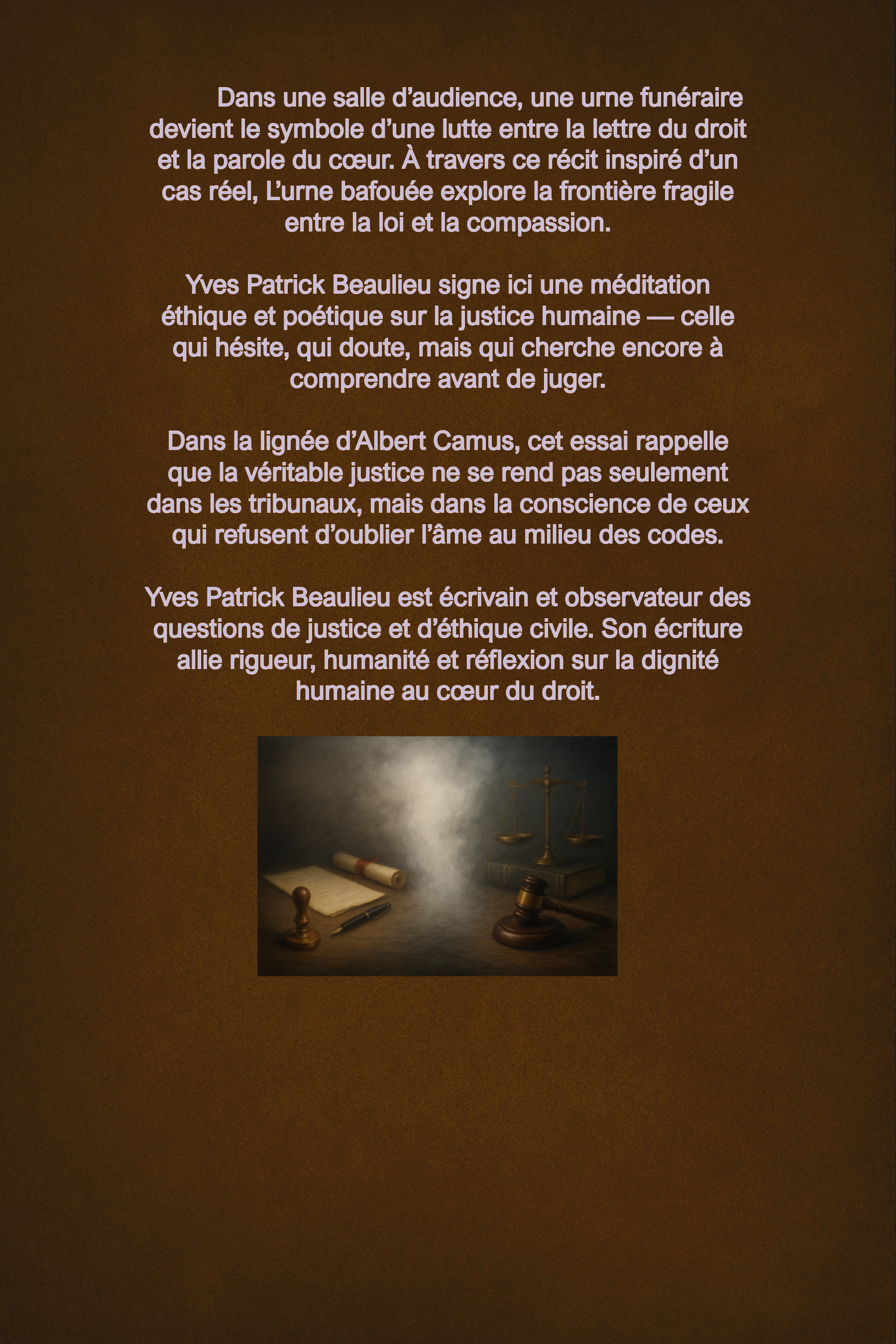 Yves Patrick Beaulieu signe ici une méditation éthique et poétique sur la justice humaine — celle qui hésite, qui doute, mais qui cherche encore à comprendre avant de juger.